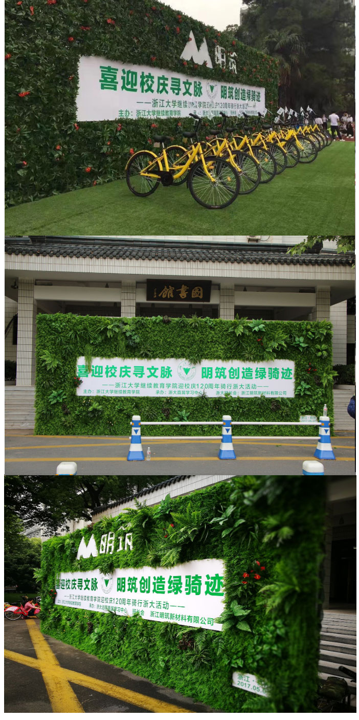 浙江周年校慶明筑聯(lián)合浙大舉辦的綠騎跡活動(dòng),現(xiàn)場展現(xiàn)了多面制作非常精美的植物墻,為精彩的活動(dòng)起到了點(diǎn)睛的作用。