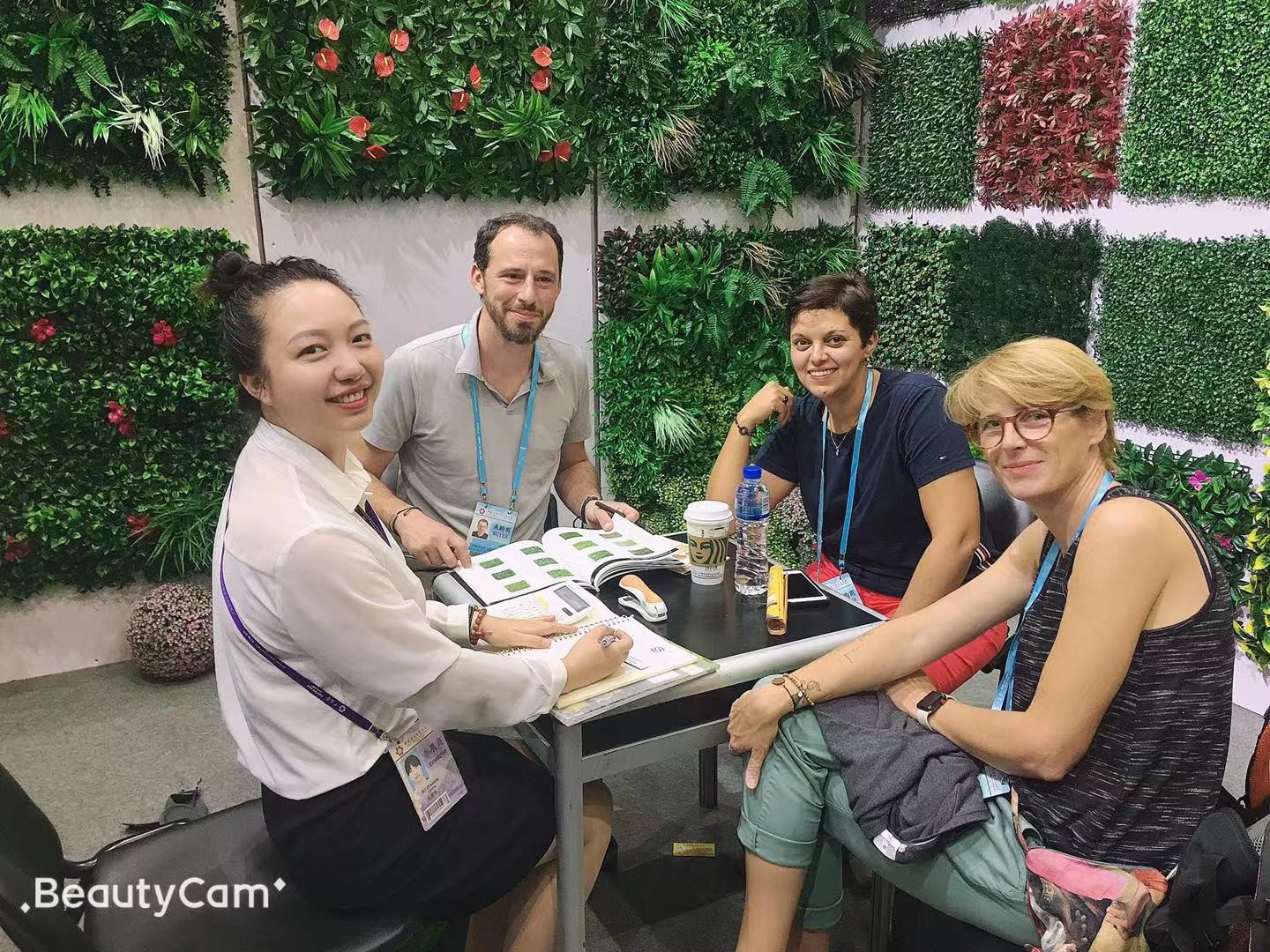 ?明筑公司自2001年參加廣交會以來,從一開始的幾百萬銷售額到現(xiàn)在的幾個億,連續(xù)六年銷售額增幅保持在30%以上,連續(xù)六年全國同行業(yè)出口排名第一,這都跟廣交會這個平臺密不可分。近年來,出口環(huán)境日益嚴(yán)峻,中美貿(mào)易摩擦給整個行業(yè)帶來了不確定的影響,且一些不良小工廠只抄襲外觀設(shè)計,不注重產(chǎn)品自身品質(zhì),擾亂市場價格讓明筑公司受到了前所未有的挑戰(zhàn),然而所有明筑人眾志成城,砥礪前行。本屆廣交會公司參展的產(chǎn)品除了仿真植物墻,仿真植物籬笆,擠出籬笆等常規(guī)產(chǎn)品外還推出了一系列新產(chǎn)品,仿真植物雕塑和仿真花環(huán)。來自澳大利亞,沙特,美國等三位客戶當(dāng)場簽下了仿真球,高仿真綠色植物墻等訂單,累計成交量大約3000萬元。