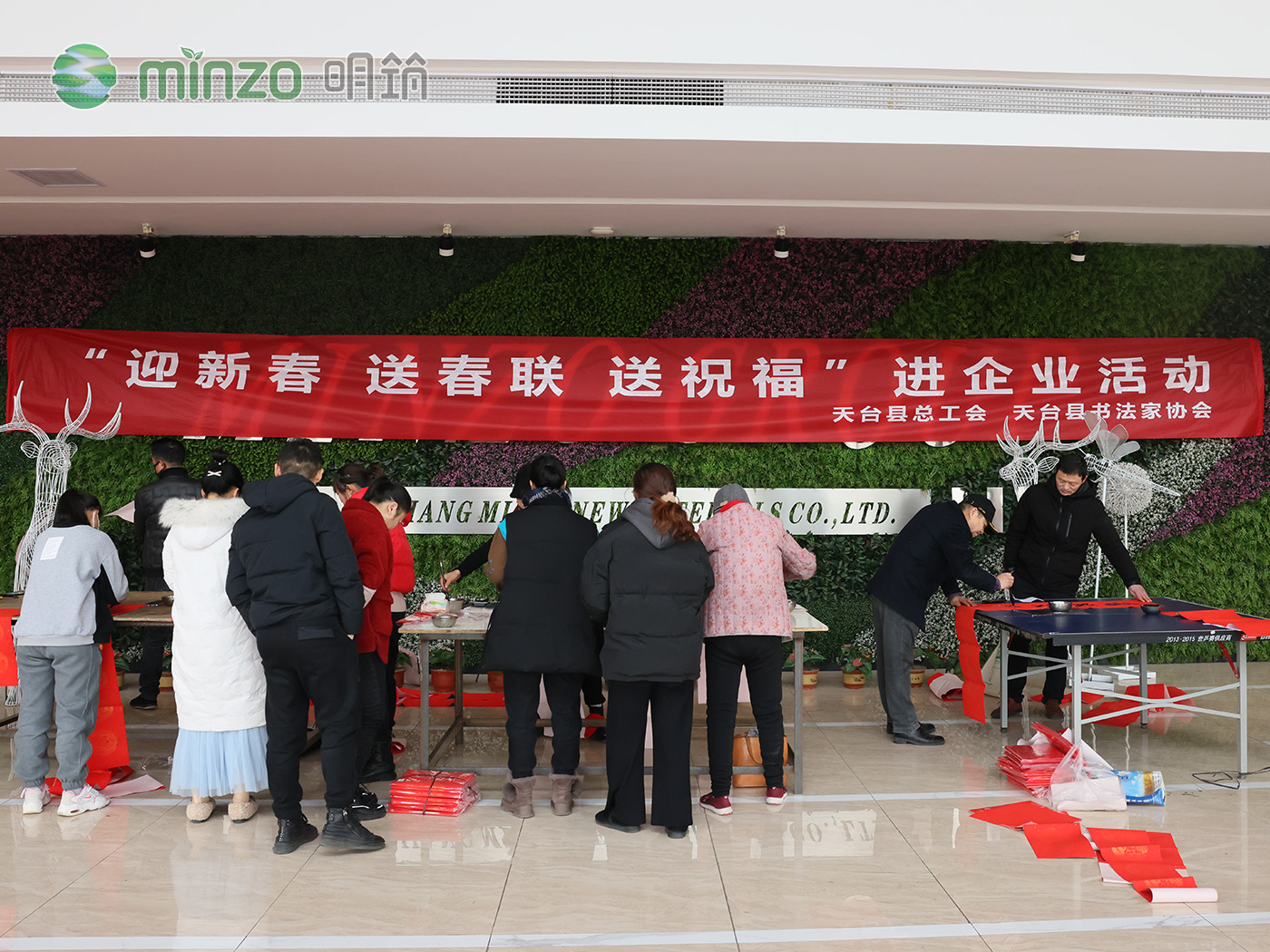 1月21日,天臺(tái)縣總工會(huì)連同縣書(shū)法家協(xié)會(huì)來(lái)到明筑公司開(kāi)展送春聯(lián)服務(wù)。