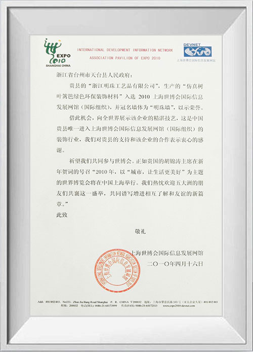 浙江明筑新材料股份有限公司坐落于浙江省風景秀麗的5A級風景名勝區(qū)天臺縣,是專業(yè)生產(chǎn)仿真植物墻的企業(yè),產(chǎn)品出口100多個國家,是生產(chǎn)仿真植物墻產(chǎn)品的先驅(qū)企業(yè),廠區(qū)現(xiàn)有建筑面積13萬平方米。公司建立的ISO9001國際質(zhì)量管理體系、ISO14001環(huán)境管理體系標示著明筑產(chǎn)品的優(yōu)良品質(zhì);明筑擁有優(yōu)秀的技術研發(fā)能力先后獲得的歐美多個國家七十多項專利,公司自主研發(fā)多條生產(chǎn)線設備。榮獲國家高新技術企業(yè)、浙江省名牌產(chǎn)品、浙江省出口名牌企業(yè)、浙江省知名商號、浙江省誠信企業(yè)、浙江省信用管理示范企業(yè)、浙江省科技型企業(yè)、浙江省成長型企業(yè)和臺州市級的專利示范企業(yè)、與企業(yè)技術中心等榮譽稱號。